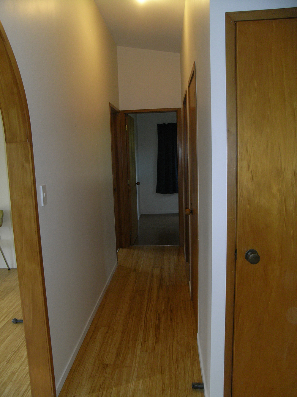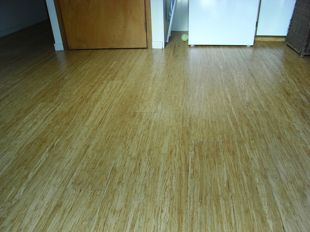 As I mentioned in last month’s article, the existing floor had unsightly patches and the finish was worn. In the interests of durability and appearance I overlaid it with bamboo click-together strip flooring in high-wear areas and cork tiles in the bathroom and bedrooms.