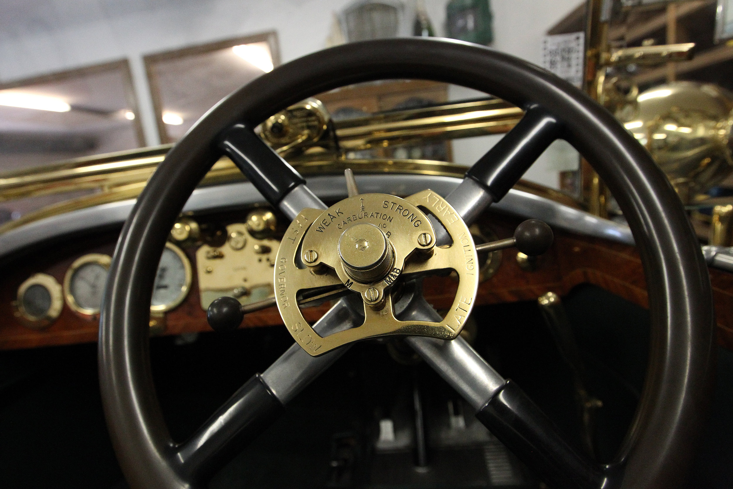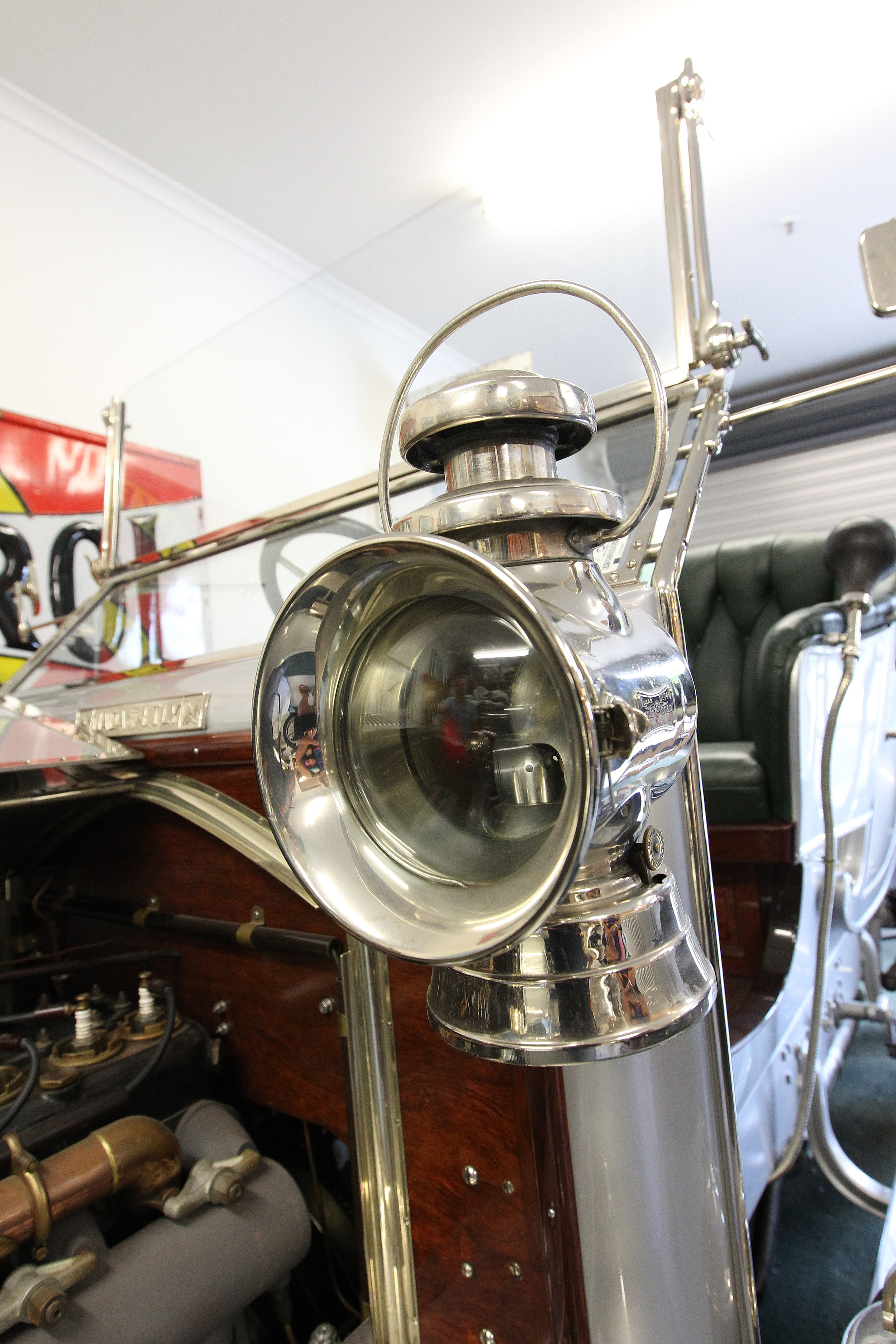 The headlights on this model were originally carbide lamps fed by an acetylene generator. Like the other two cars, the petrol is fed to the engine by pressurising the fuel tank. This was originally done via the exhaust gases, a rather dangerous innovation that was later changed to a pump on the gearbox.