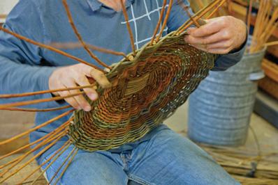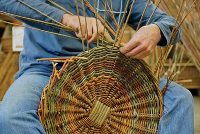 Mike makes about 300 items a year—he can make two hand baskets in a day—and goes through 1000 kg or one metric tonne of willow a year.
