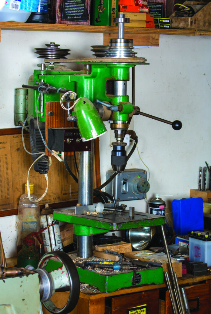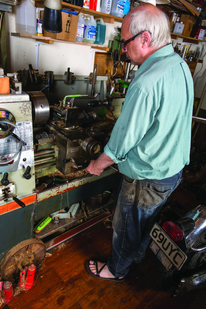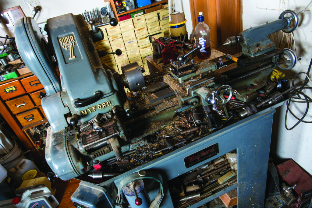 Kings of the workshop are his Myford and Colchester lathes. “They’re very useful pieces of equipment and great for all sorts of specialist stuff. I also use them for restoring motorbikes and making parts for old bikes,” he says, laughing.
