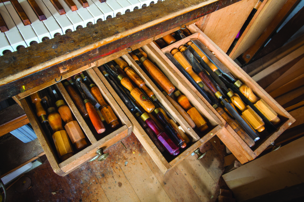 “When I first started making the harpsichords, I had never seen the original tools that were used so I designed and made my own for particular jobs. It was problem-solving and not based on anything else. Now I’ve seen what was originally used, and some are quite cumbersome – I still use a lot of the tools I made years ago to this day.”