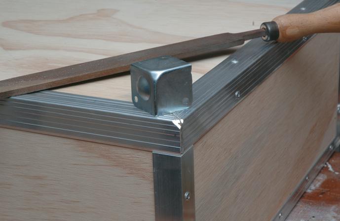 Cut the pieces of ply to size. Cut the bottom edge pieces from angle alloy to size. You can mitre