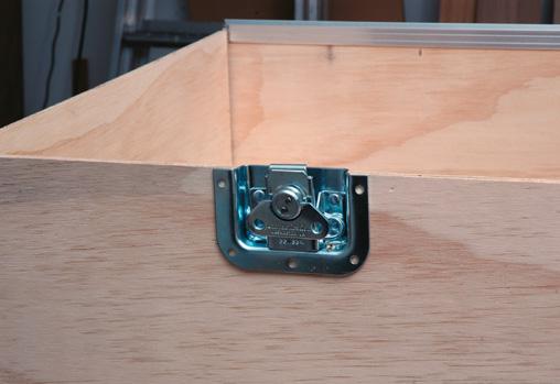 The lip can then be cut to fit the new front layout and a hinge attached at the rear. The locks actually protrude above the level of the ply. It pays to test this first. I didn’t, assuming that the two fitted into the ply structure only to find a large gap once I made and test fitted the lid. The locks require 5 mm rivets which are a true test of your hand strength. After popping some 100 rivets you begin to wish for a better way. I did actually buy a more modern and heavier-duty contractor-grade riveter but found my cheap, 20-year-old model was actually easier to use.