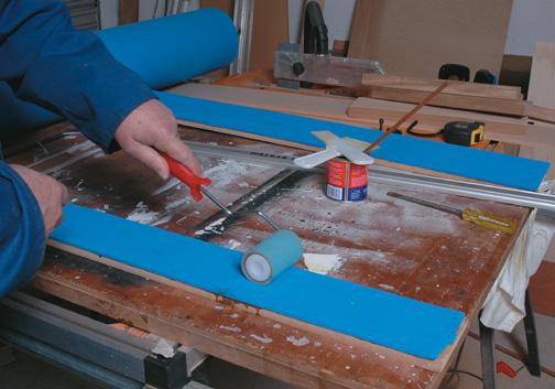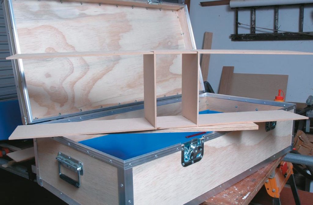 The base has 10 mm foam laid to absorb shocks. The rest of the partitions use a 5 mm hi-density foam attached with Ados FP2 contact cement. After cutting the boards and the foam to size, work out where your pieces will intersect and cut a notch here to allow the pieces to fit and support each other.
