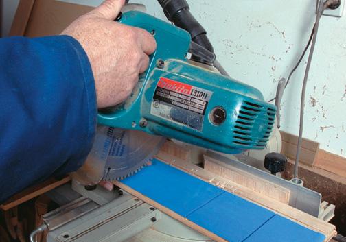 Remember to allow for the width of two pieces of foam plus the board when you come to lay up the longer pieces for foam. I found I was able to adjust the mitre saw and, using the same alloy blade, I could cut the foam without cutting through the board. I glued the cross-pieces in place for stability since there is little else to hold the middle partitions steady.