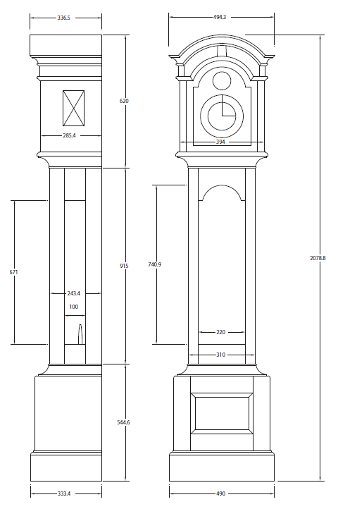 I had to increase the plan dimensions to fit the mechanism, ash wood was chosen and I ended up with 23 metres of approximately 200 x 25mm rough-sawn at an average length of 2.4 metres costing just under $300. This is not the ideal style of clock case for anything other than an antique clock mechanism. In modern clock mechanisms, the pendulum swing (which should always be tested) needs a straight-waisted trunk style of clock. However, this project has been done to the requirements.