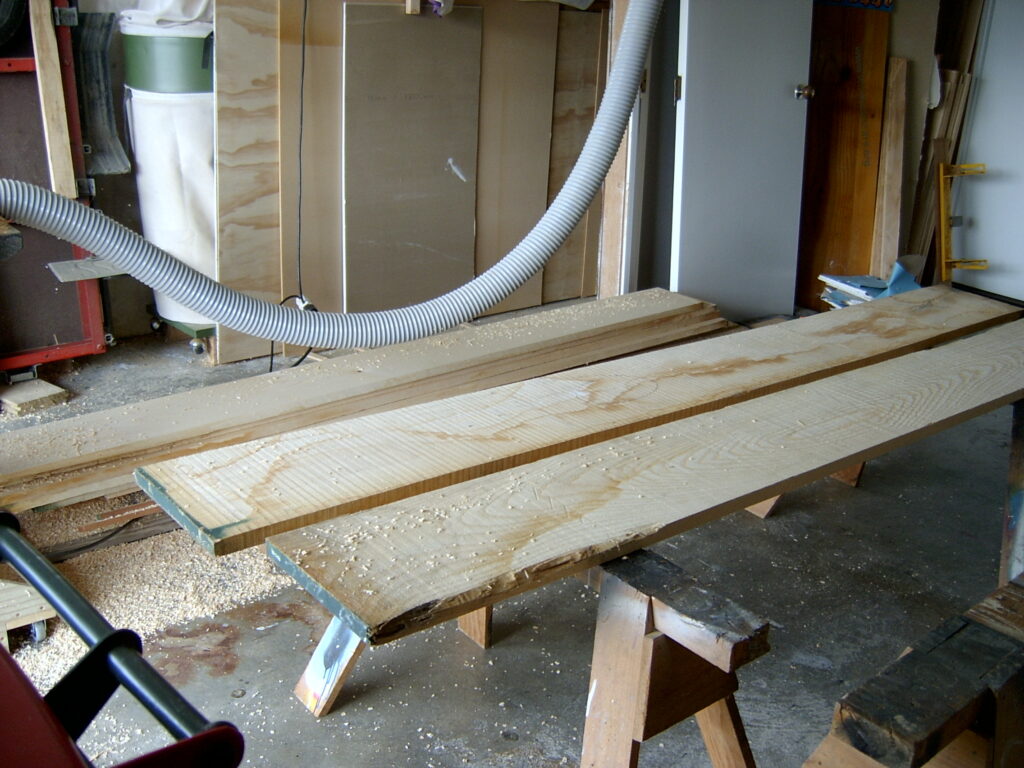 I bought two pieces of 300 mm wide timber, knowing I would have to cut off approximately 100mm to get them through my thicknesser. The timber was machined to 20mm thickness and then coarse-sanded to 18.3 mm.