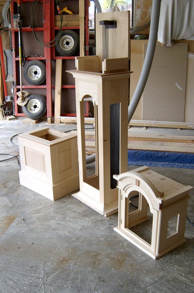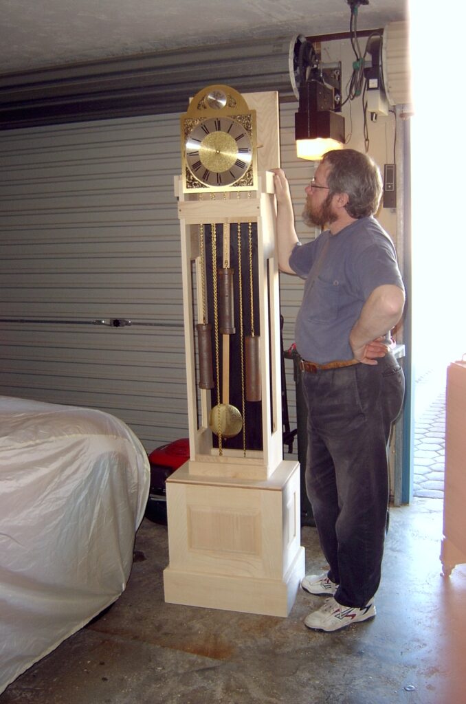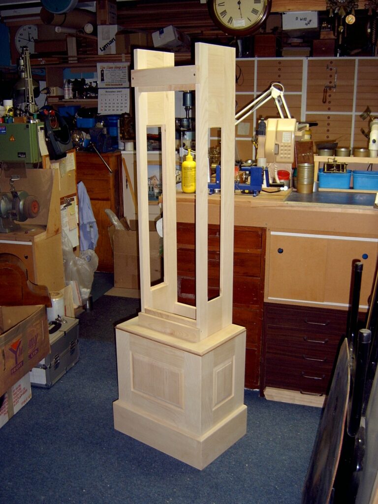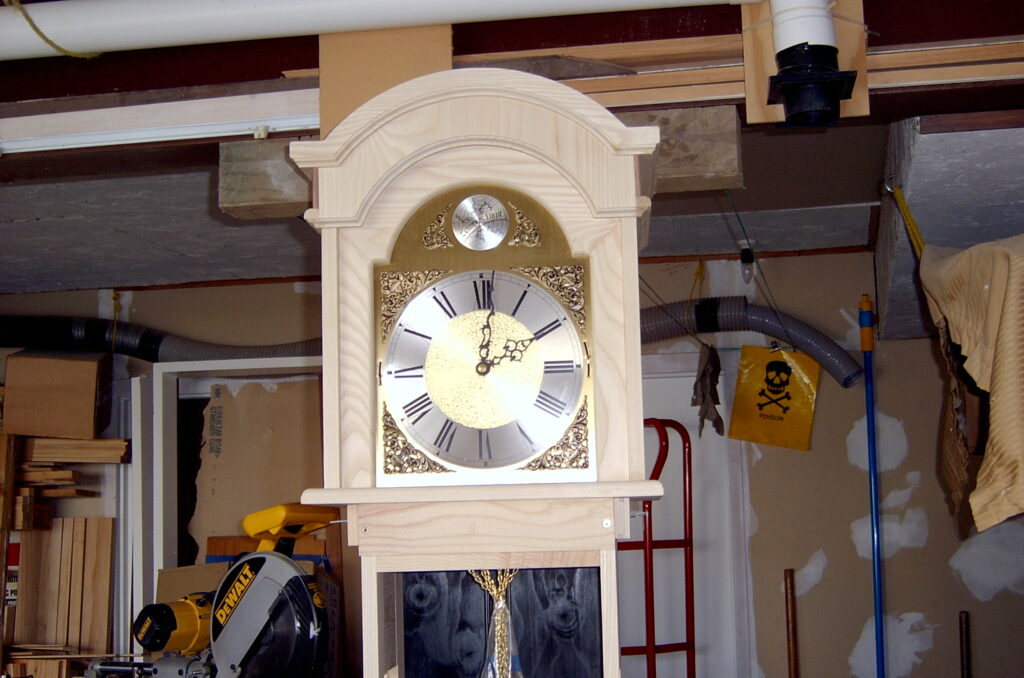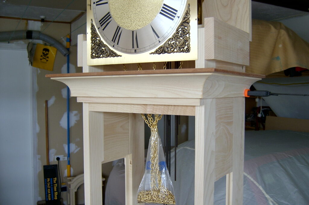 I had always wanted to build a grandfather clock case and was given the incentive when a client gave me a modern clock mechanism and a photocopy of a reproduction of an English Tall Case clock to follow.