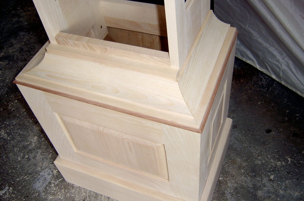Finally, the pillars will be made as a three-quarter round and fitted to the outside edge of the hood front styles. This allows clearance for the hood door to be opened wider. As a clockmaker and repairer, I find hood doors that open only 90 degrees are restrictive. When there are children around, it is safe practice to fit a lock to the trunk door to prevent them from playing with the chains and pendulum. For me, it is not the best idea, as I make my living fixing these problems but I know there are no small hands in residence with this client.