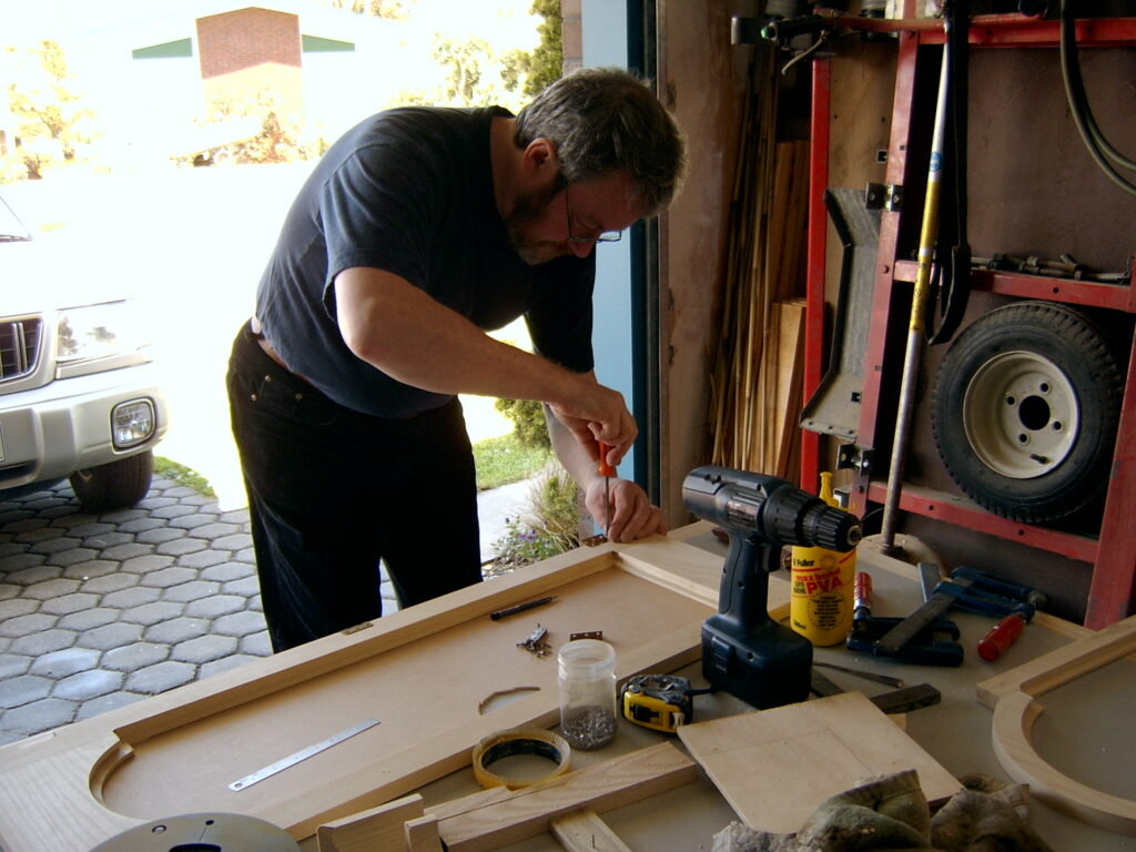 The back of the groove is removed between the top and bottom rails and on the top and bottom rails themselves so that it becomes a rebate for the glass. When machining the front pair of styles for the sides, I also grooved the internal side to joint a fillet strip to close the gap between the side panels and the dial outer edges. I use glue joints wherever possible with just eight screws and a handful of nails for the ply backs and to secure the hood rails to the hood side panels. You could screw the rails on.