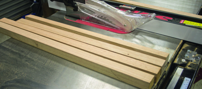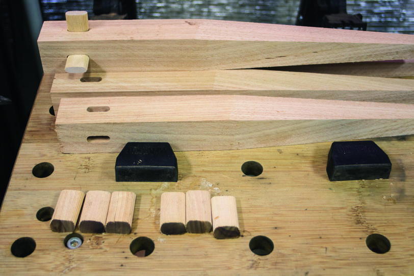 The legs are first dressed to size and cut to length. Using the basic taper jig described earlier, two of the four sides of each leg were tapered, removing a lot of the visual weight of the legs. The rails were then cut and joined to the legs with dominos. (Again, biscuits or dowels would have also worked).