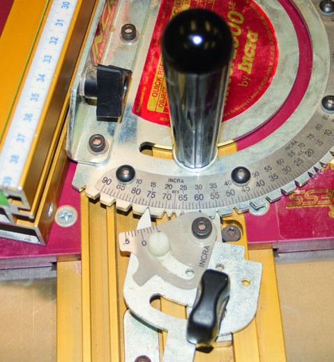 I chose another option for the wedges – a highly accurate mitre gauge, attached to a sled that runs in the mitre slot on the table saw. By then attaching a clamp, each board can be solidly locked down making it easy, and safe to run through the blade. The mitre gauge I used (the Incra 1000SE) is accurate to 1/10 of a degree, so it really allows you to dial in an angle. Even so, at the fit-up I found a small error had crept in, so to counter it, I produced a couple of extra wedges at 16 degrees. These nicely bought the circle complete, and no one would ever be the wiser. Except now it is here in black and white for the world to read. Oh well.
