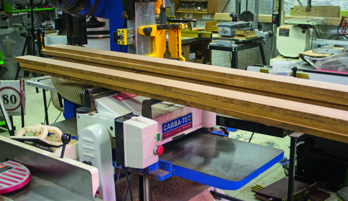 I started by taking several lengths of timber that would be sufficient for the top and dressed each on the jointer and thicknesser to create two sides that were flat and parallel, and one edge perpendicular to them. While passing them through the thicknesser, the final thickness of the top was also chosen, in this case, to be 20mm.