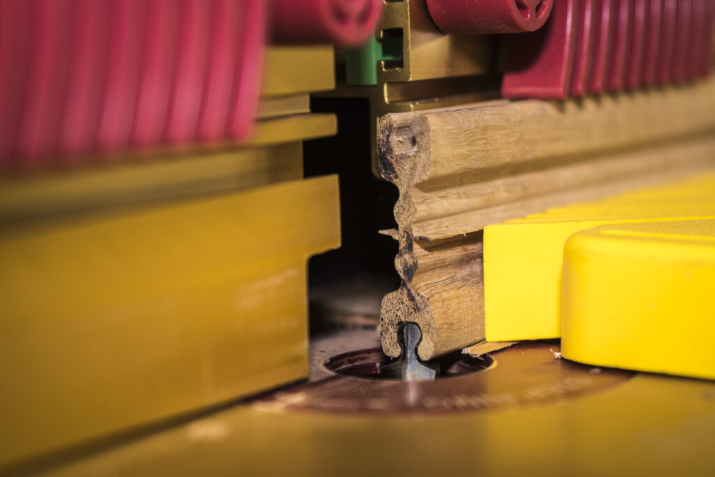 The first router bit produces a fancy “I” profile. This is in fact two tambour slats laid out head to head. They are separated into individual slats in a later step. Before cutting the slot in the base of each slat, it is best to remove as much material as possible on the tablesaw. The ball router bit is solid carbide for strength, but the less work it has to do, the better.