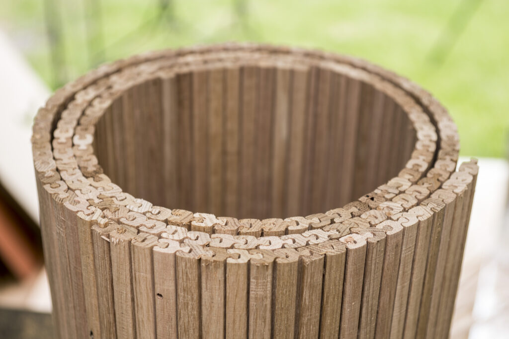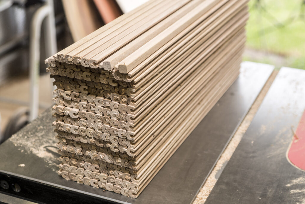 Even so, the process of producing the tambour slats generated about 100 litres of sawdust.
