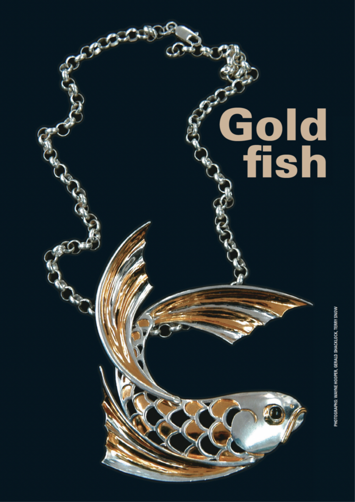 Parts of the fins, the eye and mouth are masked off with two coats of nail polish before being sent off to the electro-platers. A bright 22-carat gold coating will adhere to any surface of the fish that is not masked off by nail polish. The nail polish is then stripped off with paint thinners to reveal a contrasting silver and gold finish.