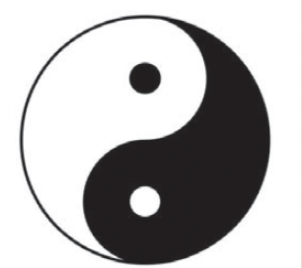 The symbol of yin yang used in the Chinese philosophy Taoism shows polar opposites, equal and contrary, but with their forces conforming and complementing each other to create a harmonious whole.