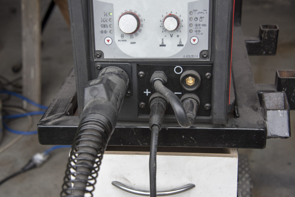 The first thing you need to do for gasless welding is to reverse the polarity. The earth is now positive, and the electrode is negative. On my machine there is a synergic setting for gasless wire but it is set up for 0.9mm wire and I’m only using 0.8 mm. I figured it would work anyway and it did. I found it better to tune the machine to weld for about 2.6mm instead of the usual 3mm. That tended to slow the deposition down enough so that I could work easier with it without burning through.