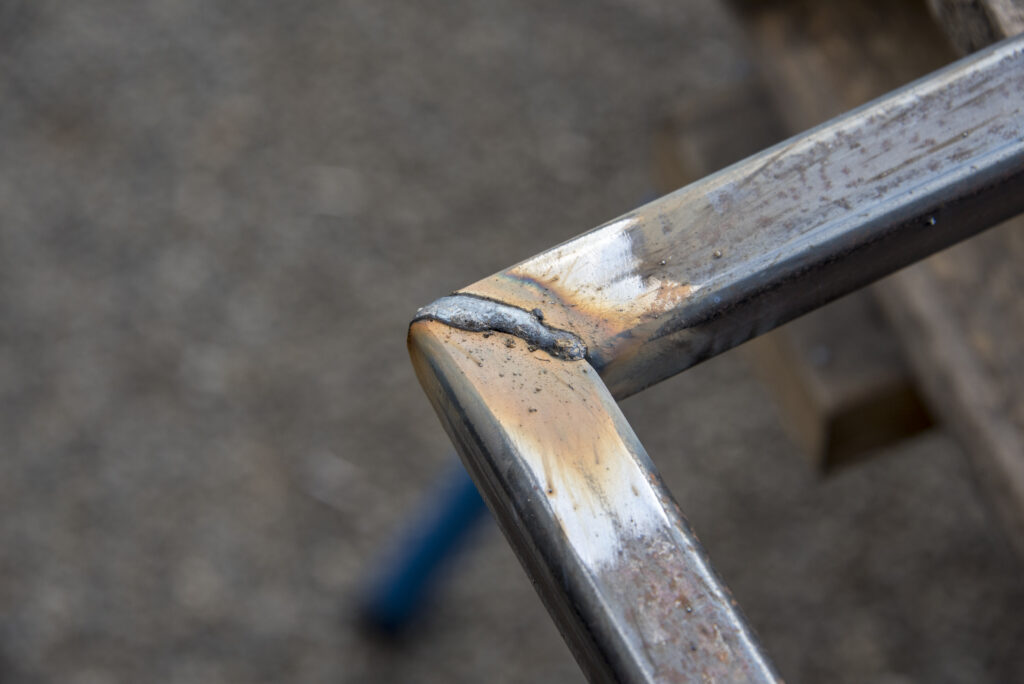 Gasless wire is exactly like arc welding in that the weld leaves slag that needs to be cleaned off. You can’t simply weld over a bad joint. It must be cleaned first, either with a slag hammer or a wire brush, although I found I didn’t have to use the hammer much. I tended to grind off the welds before welding over runs. Because it does leave a slag you must alter your technique to drag not push the weld puddle – if it’s slag you drag – as you would for arc welding.