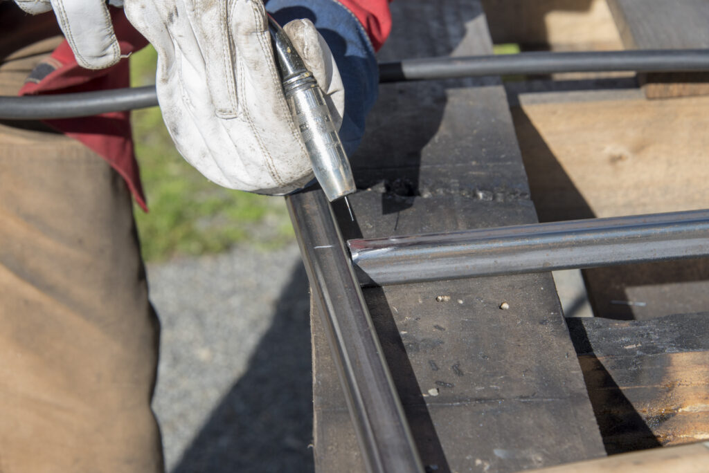 I elected to weld the parts together with gasless flux core wire, specifically BOC SmoothCor™ GS. I figured that the size of the crate would mean it was easier to work outside. Any kind of breeze can make gas-shielded welding ineffective especially outside so it was a no brainer really. Flux core is similar to stick welding where the stick carries a chemical that ignites from the arc and generates a gas that effectively shields the weld. In the case of flux core, the wire is hollow and contains the chemical that shields the weld like an arc rod turned inside out.