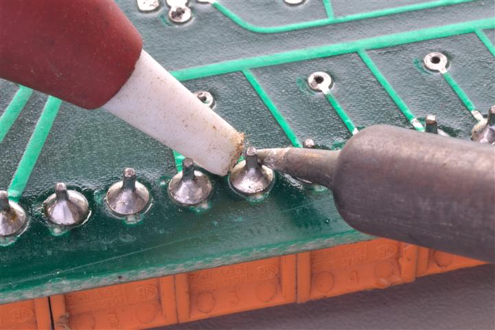 The board (PCB pad) and component wire are heated equally, and then solder is applied to complete the joint. This whole process takes less than five seconds.