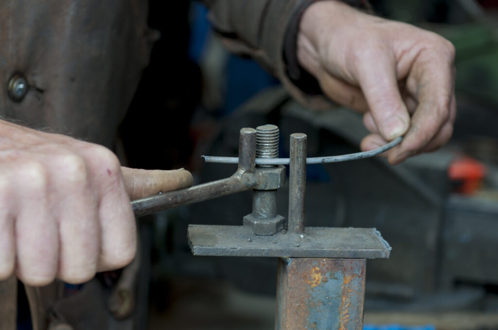 His initial frameworks are simple structures made out of wire and builders’ reinforcing rods which he curves into shape using heat and a home-built metal former.