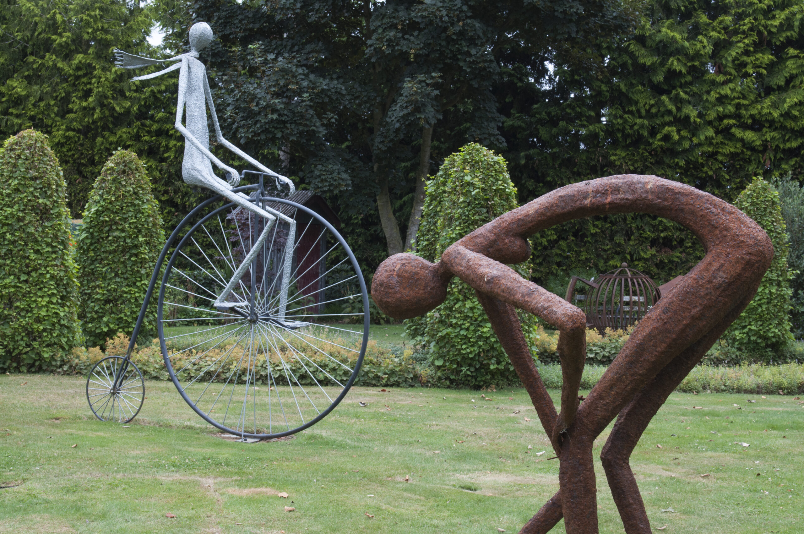 A silver giant sits reading under the trees while a woman stoops to pick a flower and a thin man cycles past on a penny-farthing. Nearby, an enormous corkscrew dwarfs a shed filled with welding paraphernalia. One glance around Allan O’Loughlin’s garden and it’s clear that this is the home of someone with a vivid imagination and the creative skills to bring it to life.