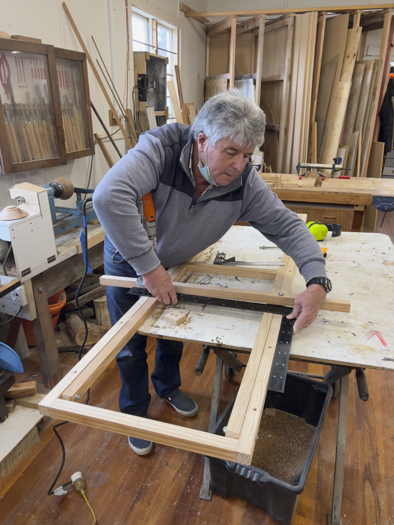 This was my [writer Nigel Young] project, and I started by going through the timber rack at our MenzShed, looking for different colours and sizes, as the plan was to laminate them together and then have the base and lamp holder turned on a lathe.