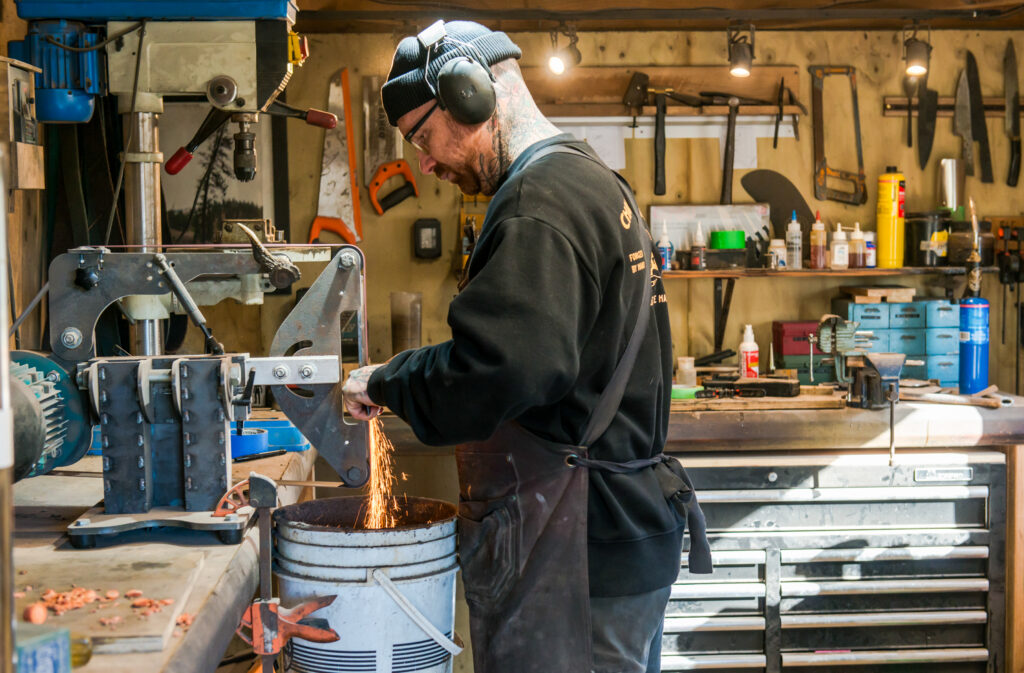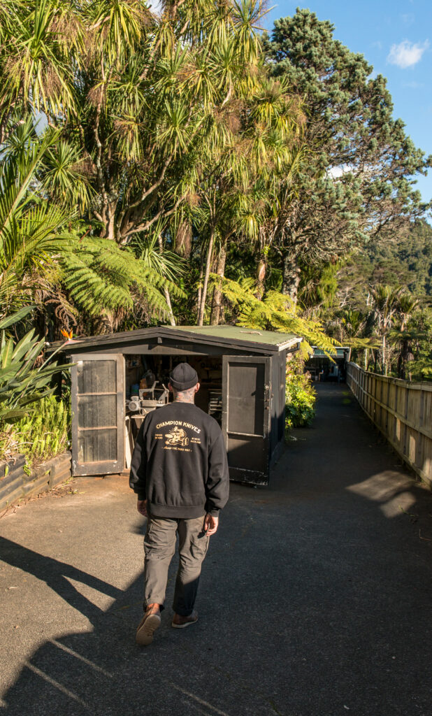 Hayden Scott’s road to crafting Damascus blades has been a journey of self-discovery, from an ambitious teen working the boning tables of the Balclutha freezing works to chef Al Brown’s right-hand man. Now, with over 25 years of experience using knives, he has found his calling: hand-forging the finest blades for cooks all over the world from his backyard sheds in the Waitākere Ranges.