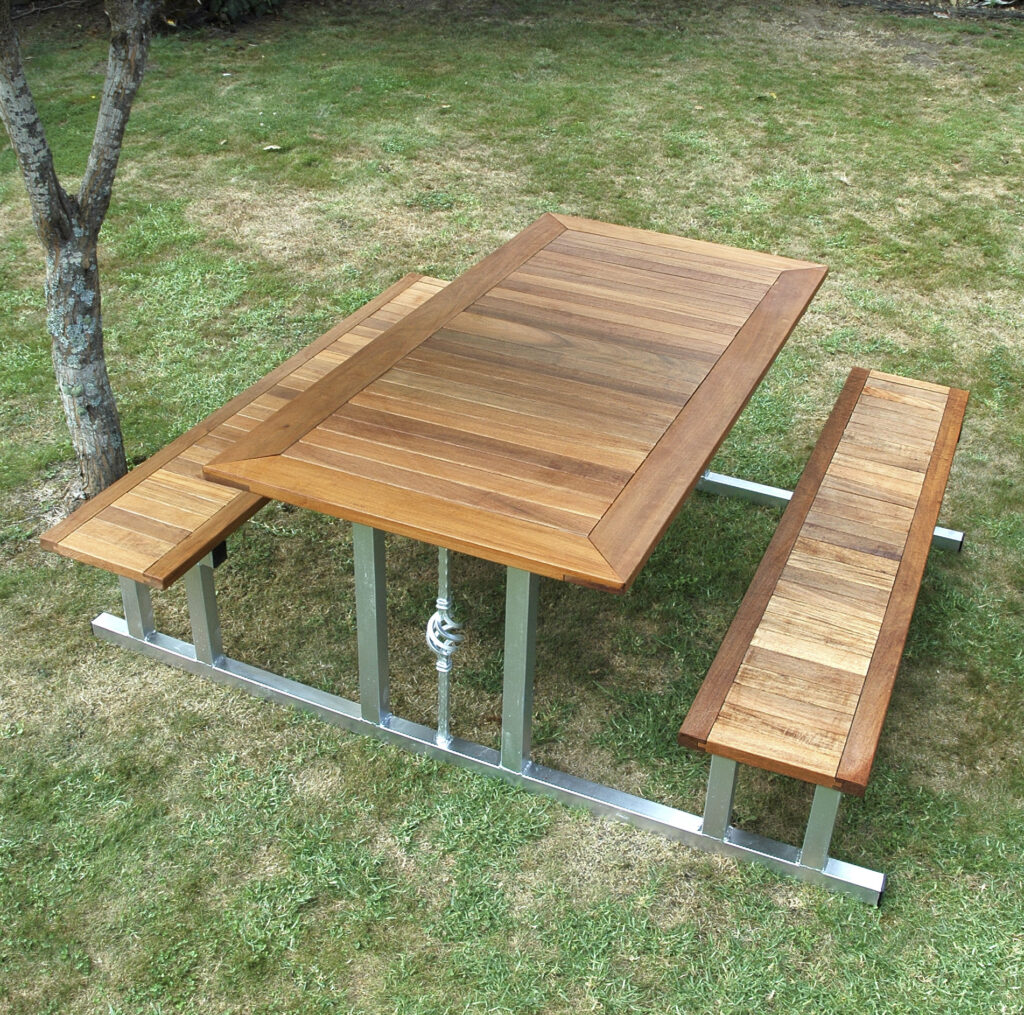 “In summer, a young or old man’s fancy, and possibly that of the family, turns to outdoor eating beside the backyard barbecue – minus the flies, of course. The question then arises: where to sit? I have seen all sorts of sizes and shapes of outdoor seating and have wanted to make a convenient outdoor table-and-seats combination for ages. I have made all-timber tables but never a steel-framed table. I chose this table because of its simplicity and the opportunity to make it all in one.”