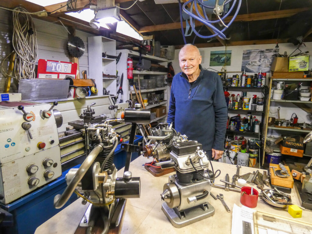 Mike Parker’s working career began as a travelling salesman; however, Mike was a bit different from your average commercial traveller. He started designing tooling machines, and then his engineering apprenticeship took him into business ownership and a decades-long interest in all things engineering. He had a passion for owning, improving and racing Speedway cars, but nowadays, he uses his skills to create some breathtaking small engines.