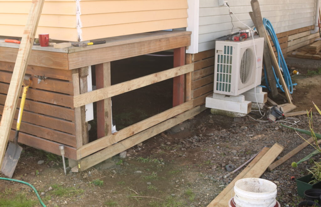 The latest was the baseboards around our new-build little cottage. Now, for whatever reason, it’s a legal requirement for code compliance to put boards around the foundations/piles to limit access under the house.”