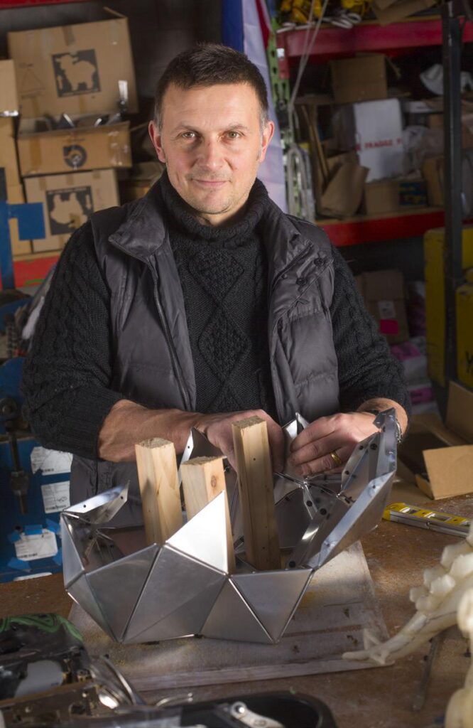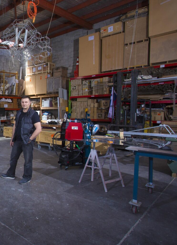 Up a flight of stairs in one corner of the studio is Gregor’s office-showroom, which features a selection of his smaller sculptures and his desk and computer. He does a lot of designing using 3D software when working on new projects, but he says nothing can beat the real thing when showing concepts to clients. “A lot of people have difficulty visualising things. I always make scale models because it’s really helpful for the client to understand what I’m creating, and it’s also good for me to work through the whole process.”