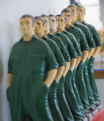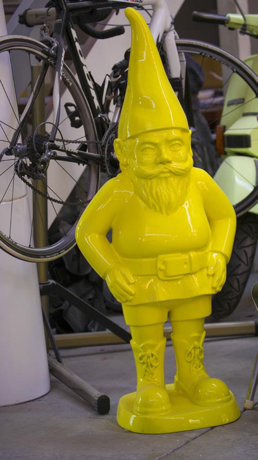 His sculptures often capture the essence of familiar images presented in surprising ways that challenge our normal perceptions of objects, such as his series of gnomes, sheep wearing All Blacks’ jerseys and overall-clad workers varying vastly in stature. Then there are the monumental works destined for public spaces. The 6-7m stud of his “shed” allows him the space to work on significant pieces.