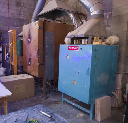 Vises, grinders, table saw, and cut-off saw? Check. MIG and TIG welders and drill press? Check. Two electric and a gas-fired kiln? Check. You get the picture. This is a serious space set up to work on all manner of materials.