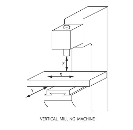 The axis of movement lengthways (X), sideways (Y), and up-and-down (Z) — the X Y Z sizes — will be quoted as the capacity of the machine. To overcome the limitations of the X axis moving in a plane in one direction, and the Y axis moving in a plane at right angles, you can always reposition the workpiece on the table and drill or machine in several operations. A little inconvenient, but possible.