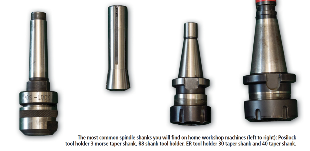 With tool holding, the R8 system holds the tooling directly and comes in metric and imperial sizes. These are relatively cheap but several will be needed to cover the different tool sizes to be held. Collet chucks are available for the R8 series but this reduces Z height. The 30 and 40 tapers have collet chucks of different types, including Autolock and the now more-common ER series of collet chucks.